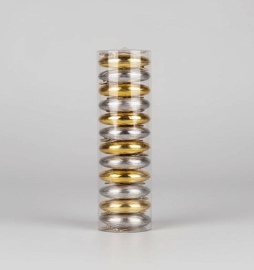 CHRISTMAS 10CM 6 PCS BOX MATTE SHINY GLITTER SILVER BAUBLES UKH-11-39-0825-83